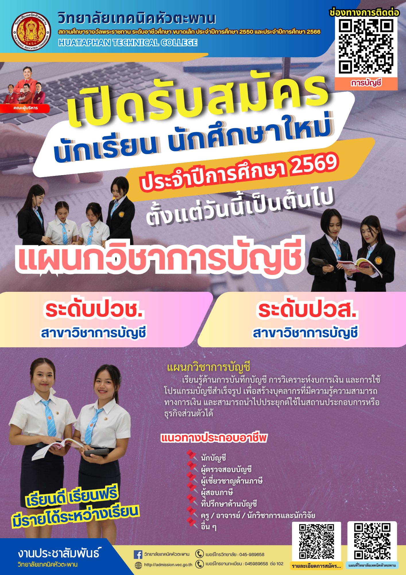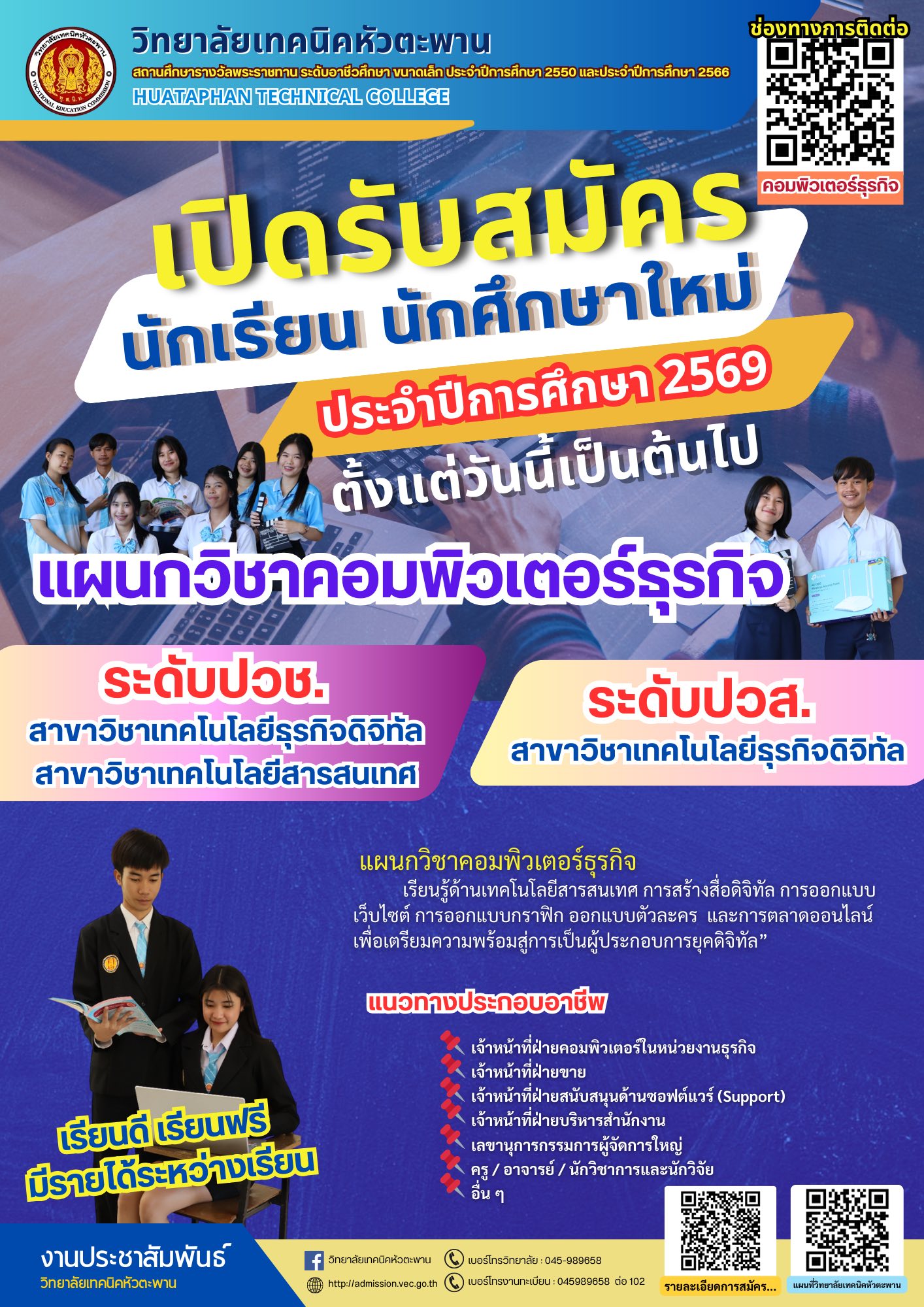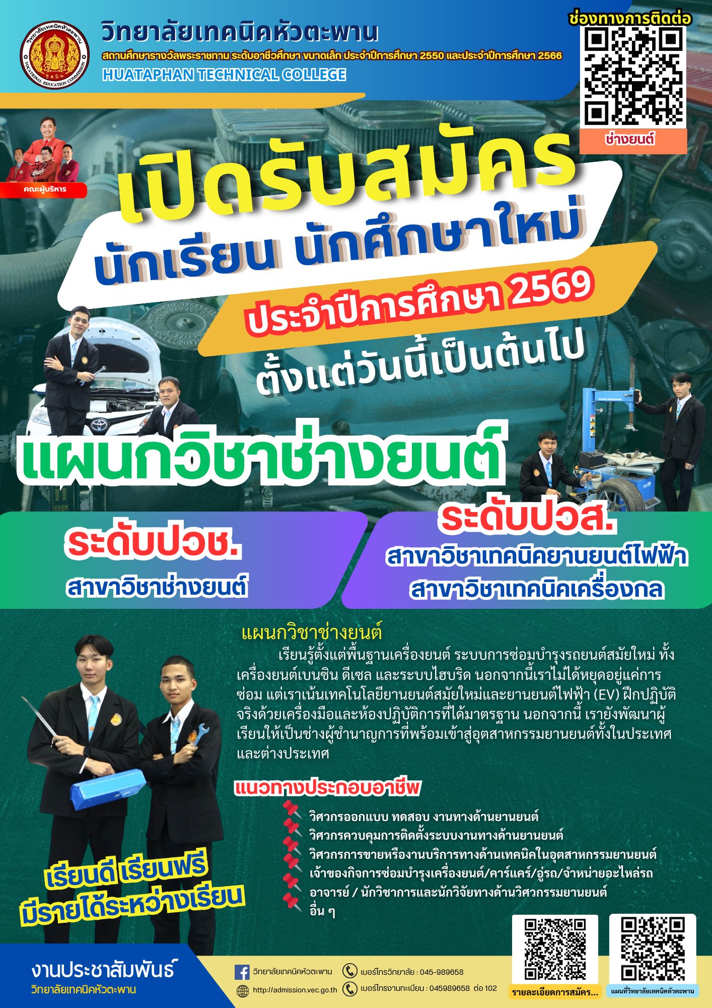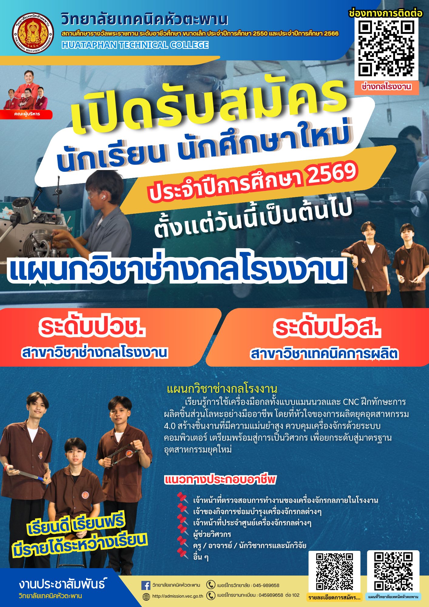 - ประกาศวิทยาลัยเทคนิคหัวตะพาน เรื่อง ขอเชิญชวนผู้ประกอบการร่วมเสนอรายละเอียด วัสดุโครงการยกระดับการจัดการศึกษาและเพิ่มสมรรถะผู้เรียนสายอาชีพ ประจำปีงบประมาณ 2569